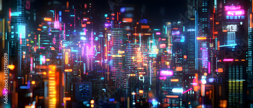 Obraz premium Futuristic Night Cityscape With Neon Lights