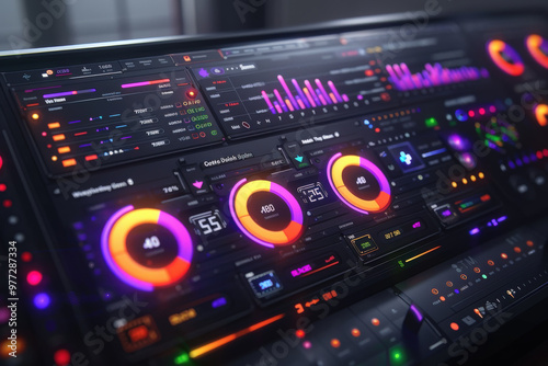 Obraz premium Futuristic Night Control Panel With Data Visualizations
