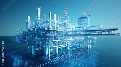Fototapeta premium Futuristic Offshore Oil Platform in a Digital Landscape