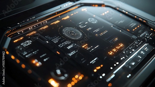 Fototapeta premium Futuristic orange and black digital interface.