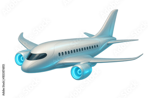 Fototapeta premium Futuristic passenger airplane flying, symbolizing global travel, advanced technology, innovation, and modern aviation transport