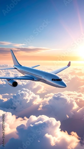 Fototapeta premium Futuristic Passenger Airplane Over Clouds