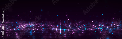 © Vitalii, Naklejka premium Futuristic perspective grid in digital cyberspace. Flow of binary code. Network connection structure. 3D rendering.