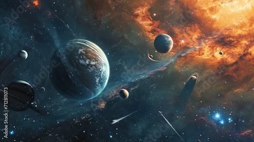Obraz premium Futuristic Planetary Alignment in Alien Terrain.