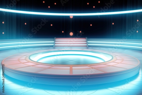 Obraz premium Futuristic platform with blue neon lights.