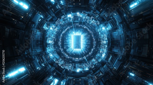 Fototapeta premium Futuristic portal activating in a spaceship core