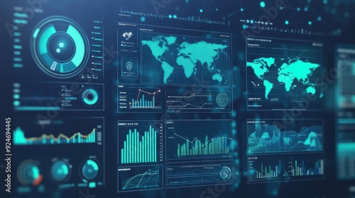 Obraz premium Futuristic Predictive Analytics Dashboard with AI Insights - Flat Design...