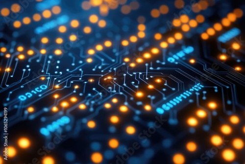 Obraz premium Futuristic printed circuit board pulsating with data flow