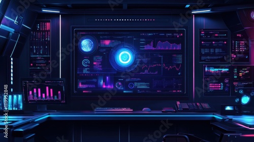 © Arthittaya, Obraz premium Futuristic Professional Workspace with Large Screen