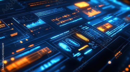 Obraz premium Futuristic Project Management Software Interface with Gantt Chart and Neon...