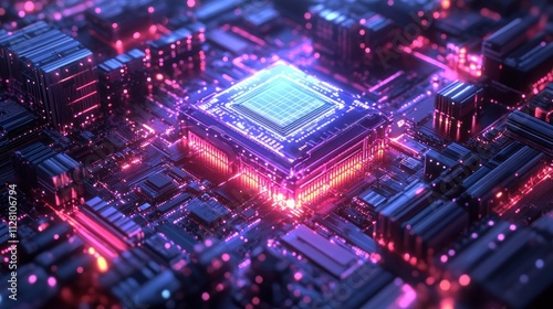 Obraz premium Futuristic Quantum Computer Core with Glowing Qubits and Advanced Circuitry...