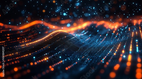 Obraz premium Futuristic Quantum Computing Illustration, Abstract AI Concept with Glowing...