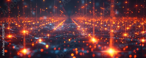 Fototapeta premium Futuristic Quantum Internet Visualized with Glowing Nodes and Boosted Signals