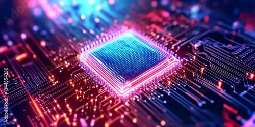 © id512, Obraz premium Futuristic quantum processor on glowing circuit board advanced quantum computing technology and innovation concept