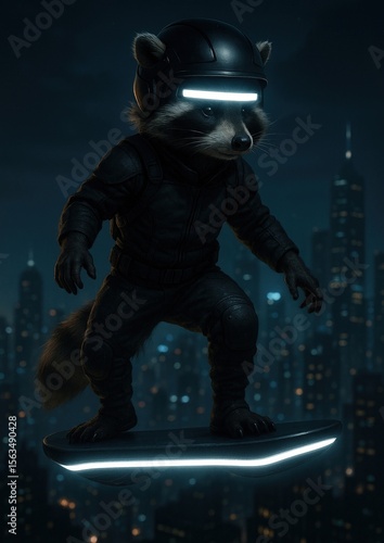 © Rawpixel.com, Fototapeta premium Futuristic raccoon on hoverboard