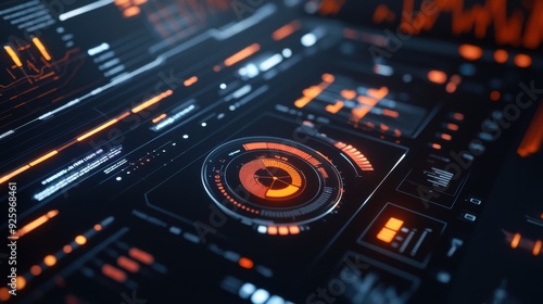 © LOMOSONIC, Fototapeta premium Futuristic Real-Time Data Analysis Concept with Live Updating Digital Dashboard - 3D Illustration