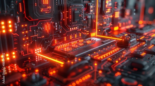 © DudeDesignStudio, Obraz premium Futuristic red glowing circuit board.