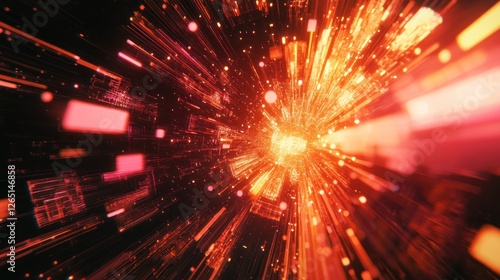 Fototapeta premium Futuristic Red Light Speed Tunnel, Abstract Technology Concept Design