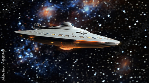 Obraz premium Futuristic research craft exploring a distant galaxy.
