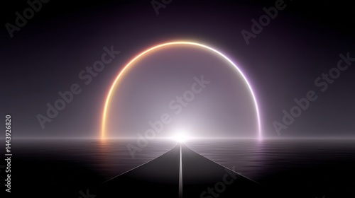 Obraz premium Futuristic Road Neon Arch Seascape Digital Art Sci Fi Background