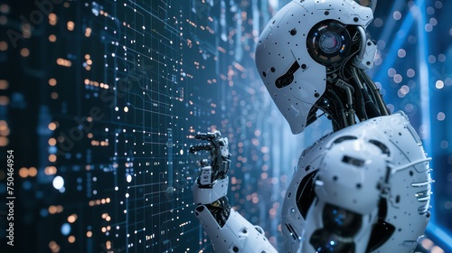 Fototapeta premium Futuristic Robot Analyzing Digital Data Streams in a Virtual Environment
