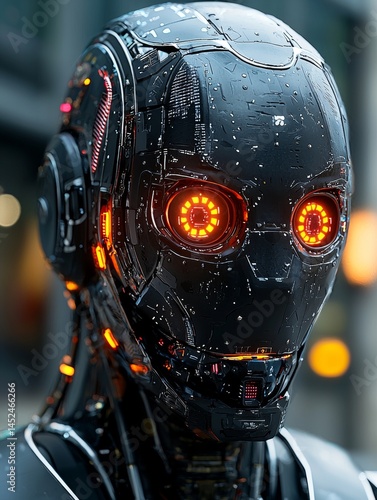 © UGAN ART, Fototapeta premium Futuristic robot head closeup