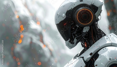 © Syafira, Fototapeta premium Futuristic robot head in a snowy landscape