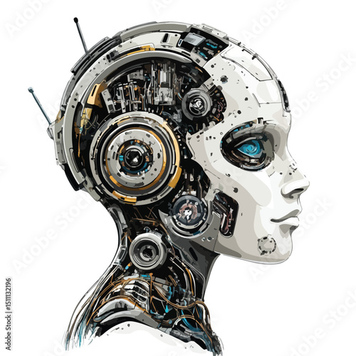 © Touch, Fototapeta premium Futuristic Robot Head with Electronic Antenna Machine Vector Illustration for Technology Projects