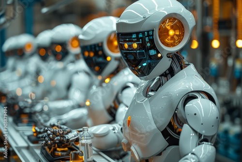Fototapeta premium Futuristic robot in a modern lab, with sleek design and advanced features....