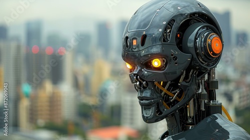 © Gayan, Fototapeta premium Futuristic Robot in Cityscape