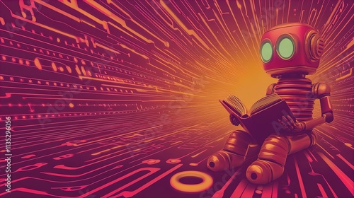 Obraz premium Futuristic Robot Reading: A Stunning Poster for Tech-Inspired Spaces,...