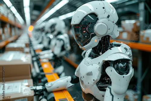 © Ivan Guia, Fototapeta premium Futuristic robot with artificial intelligence working on a parcel shipping line for package shipments