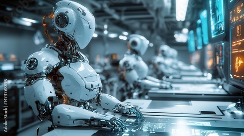 Fototapeta premium Futuristic Robotic Arm Assembling Circuit Board in Advanced Manufacturing...