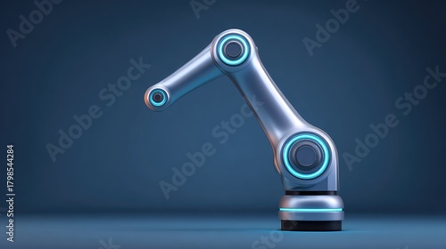 Obraz premium Futuristic robotic arm with glowing accents against a dark blue background,...