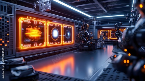 © terat, Obraz premium Futuristic Robotic Factory Control Room