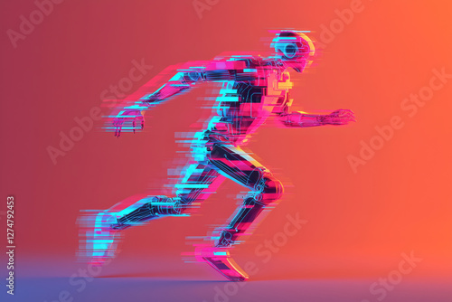 Fototapeta premium Futuristic robotic figure in motion, showcasing gradient colors and technology