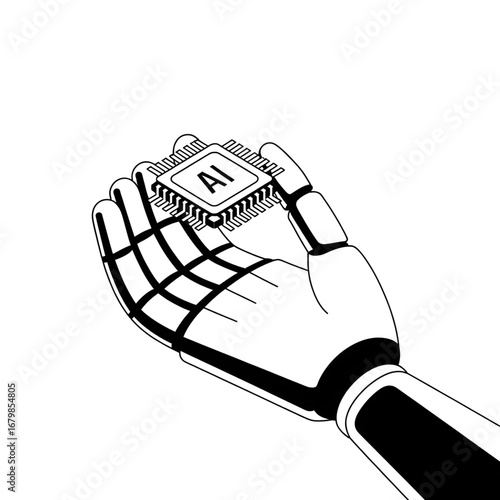 © Color&line Strokes, Fototapeta premium "Futuristic robotic hand holding AI microchip – artificial intelligence technology concept illustration"