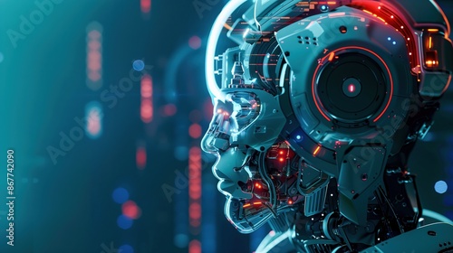 Obraz premium Futuristic Robotic Head Profile with Advanced Technology Design,