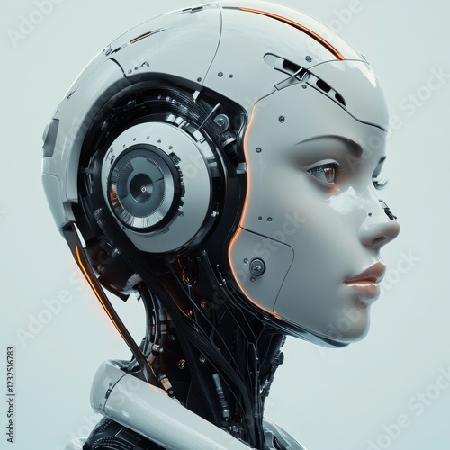 Fototapeta premium Futuristic robotic head with intricate mechanical design and details