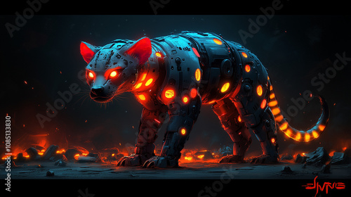 Fototapeta premium Futuristic Robotic Hyena with Glowing Lights