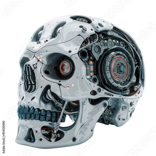 © North, Fototapeta premium Futuristic robotic skull with intricate mechanical details, showcasing advanced technology and cybernetic design.