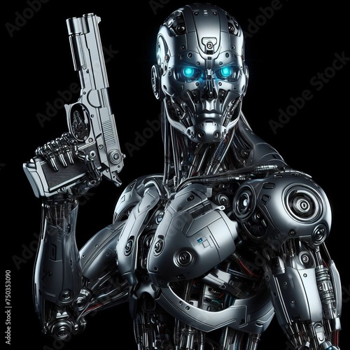 Fototapeta premium Futuristic Robotic Soldier Aiming Gun Cybernetic Weaponry Concept