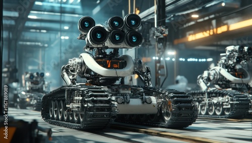 Fototapeta premium Futuristic Robotic Tank with Multiple Cameras