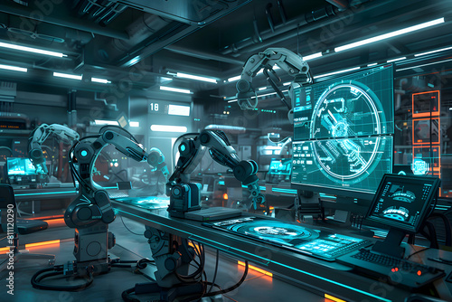 Fototapeta premium Futuristic Robotics Manufacturing Factory - Innovative High-Tech Industrial Production