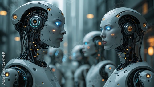 Fototapeta premium Futuristic Robots in a High-Tech Facility,robot cyborg person