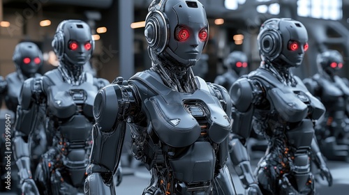 © Focusshop, Fototapeta premium Futuristic robots in a row