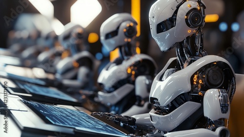 Fototapeta premium Futuristic Robots Working on Advanced Technology in a Modern Lab