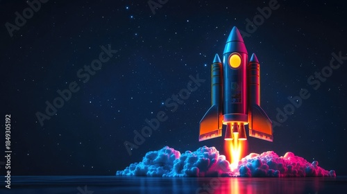 Fototapeta premium Futuristic Rocket Launch into Space Representing Exploration and Technology