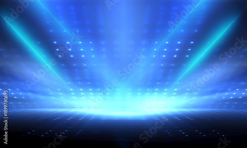 Fototapeta premium Futuristic scene of blue neon light beam shining with speed movement on dark blue background.