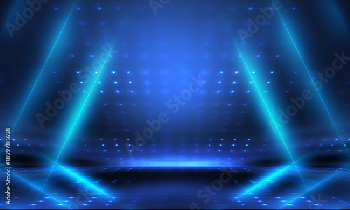 Fototapeta premium Futuristic scene of blue neon light beam shining with speed movement on dark blue background.